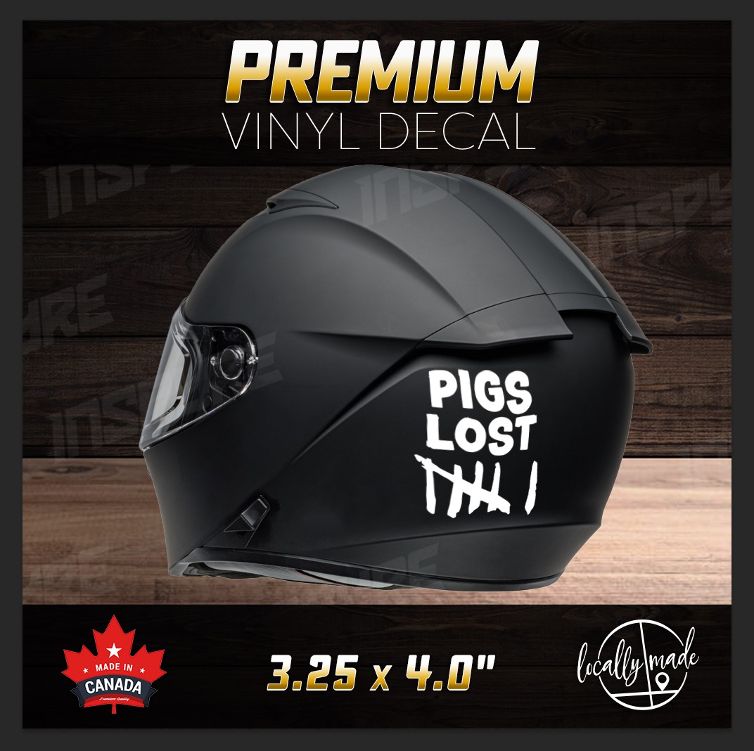 PIGS LOST stacked motorcycle helmet decal.